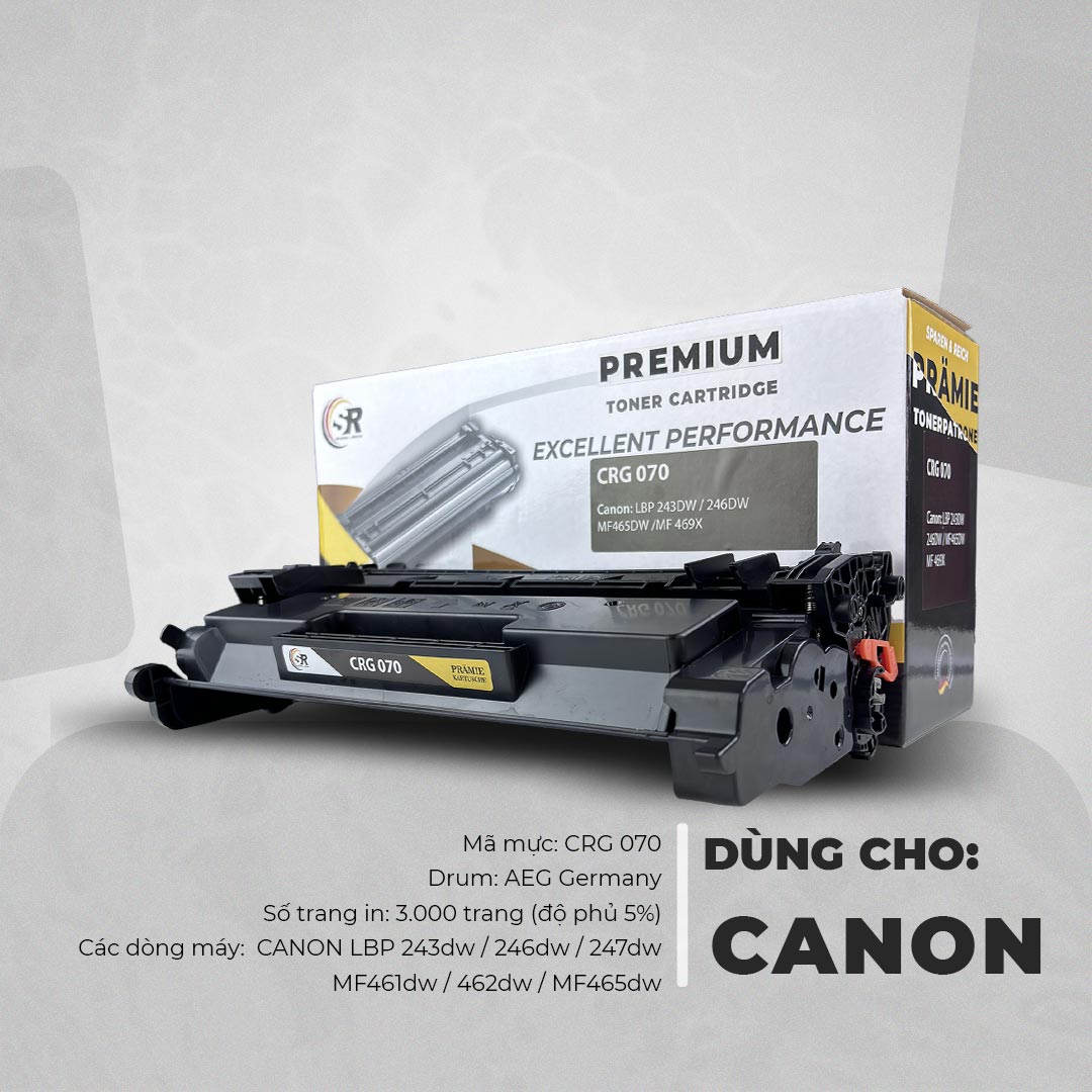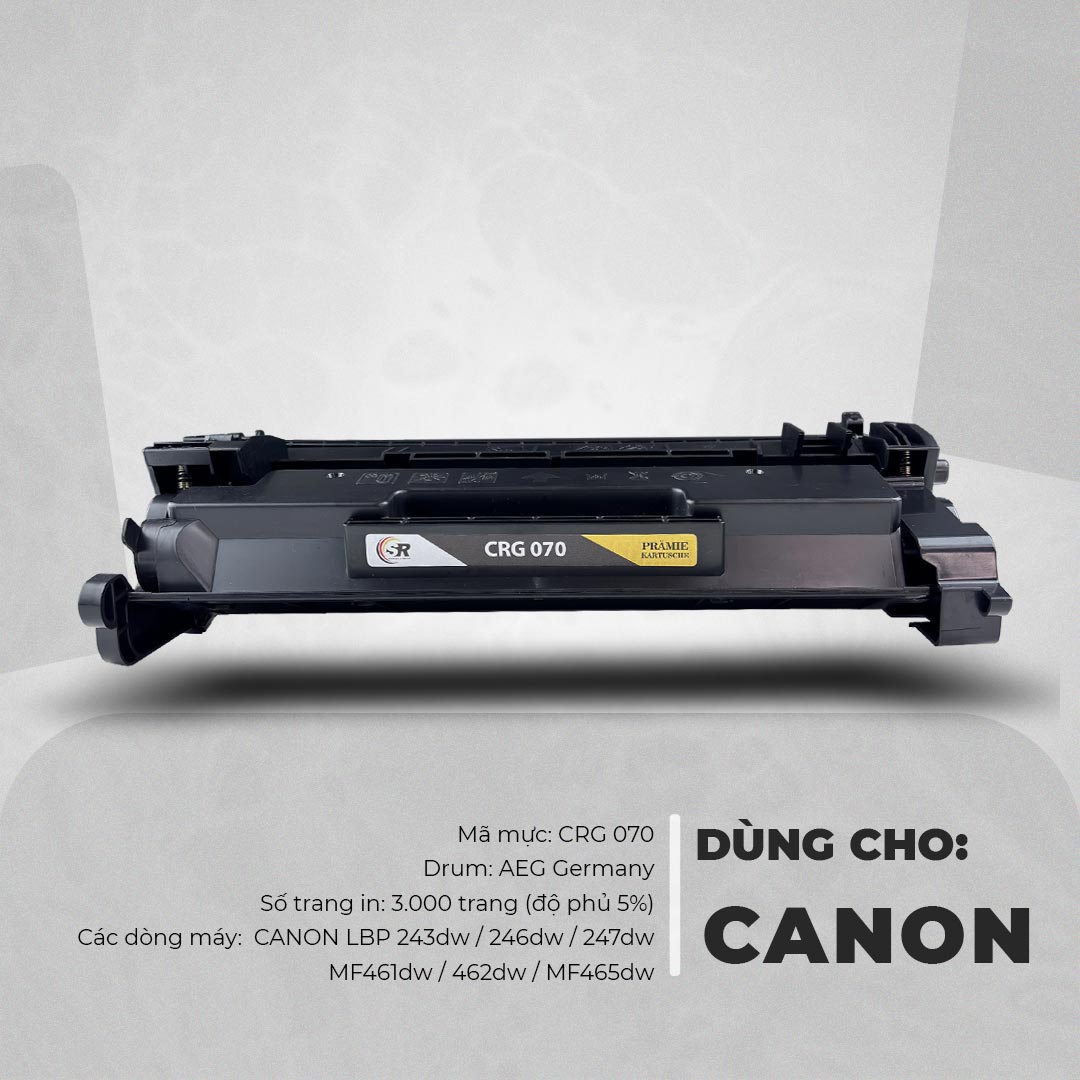 Hộp Mực in Laser SR Canon CRG 070 được sản xuất theo công nghệ tiên tiến của Đức, đạt tiêu chuẩn chất lượng cao nhất. Sản phẩm được kiểm tra nghiêm ngặt để đảm bảo chất lượng in ấn tuyệt vời, độ ổn định và tuổi thọ máy in được kéo dài.